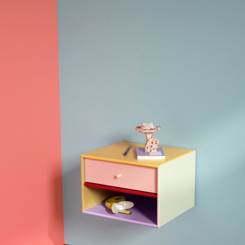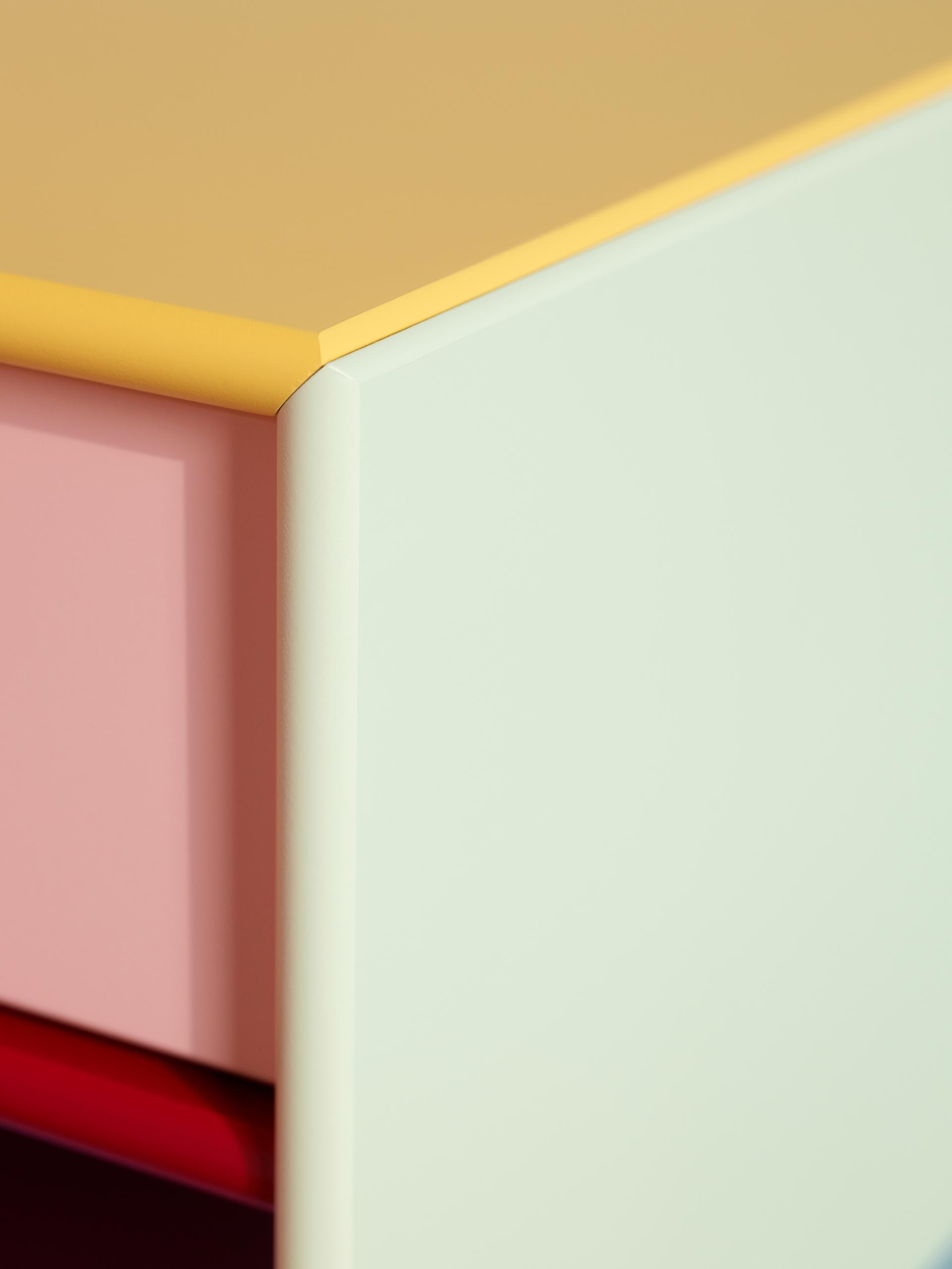 선반 컬러는 KIMPOP 듀오 소피 린데와 요아킴 잉베르센이 직접 셀렉했으며, 전체적으로 유쾌하고도 세심한 색채 조합이 돋보입니다.