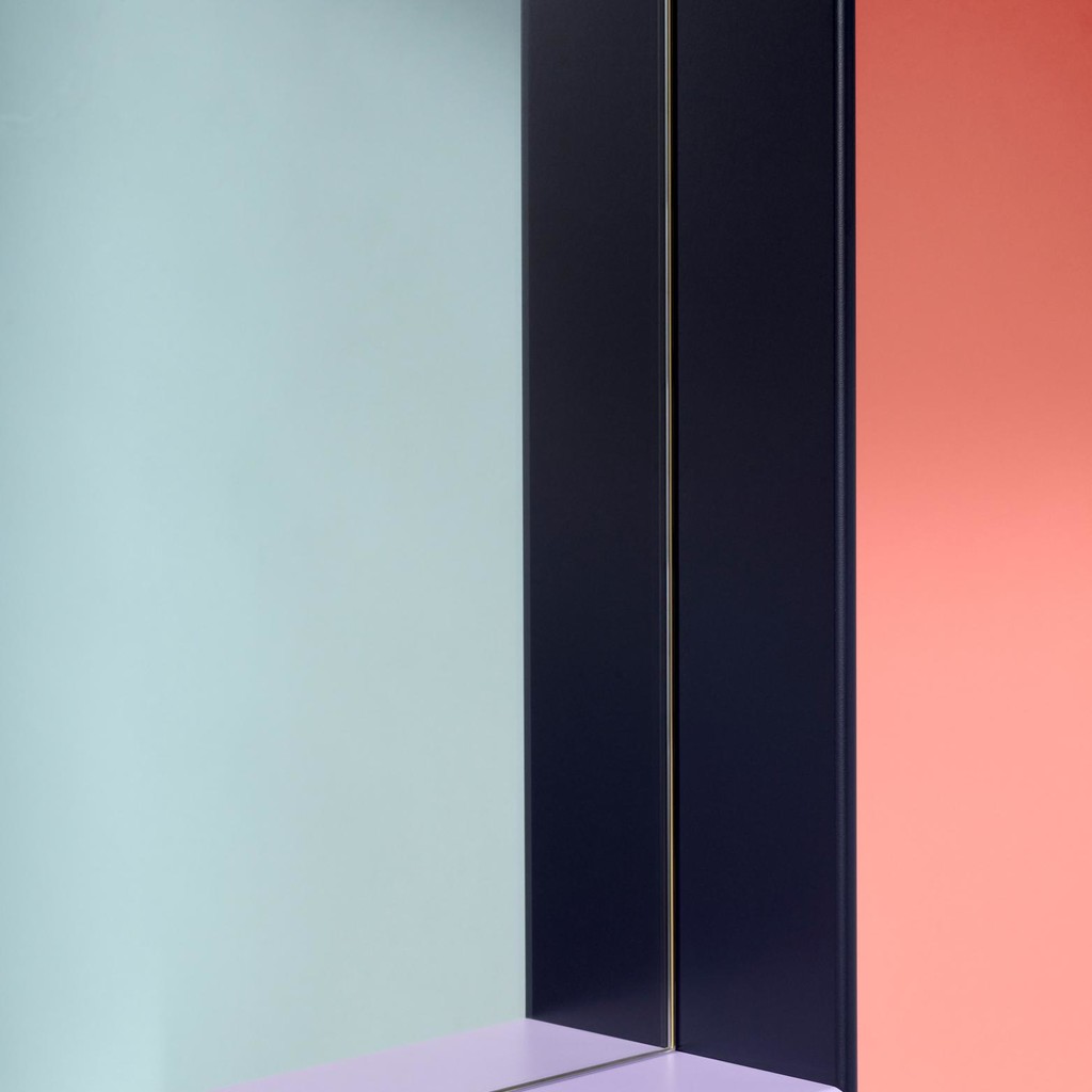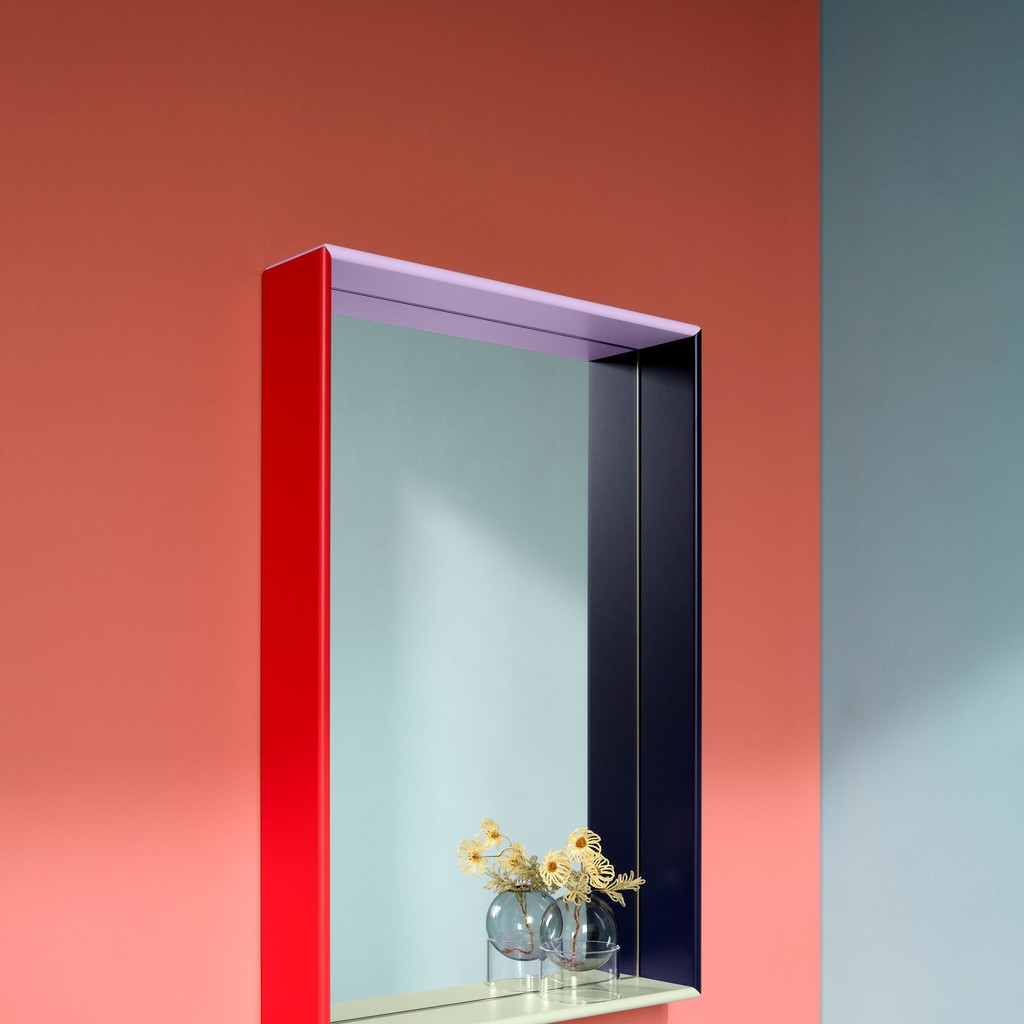 KIMPOP 듀오 소피 린데와 요아킴 잉베르센이 직접 셀렉한 네 가지 생동감 넘치는 컬러가 거울 속 일상에 유쾌한 에너지를 불어넣습니다. 거울과 컬러가 어우러진 조화는 대담하면서도 우아한 리듬감을 전하며,